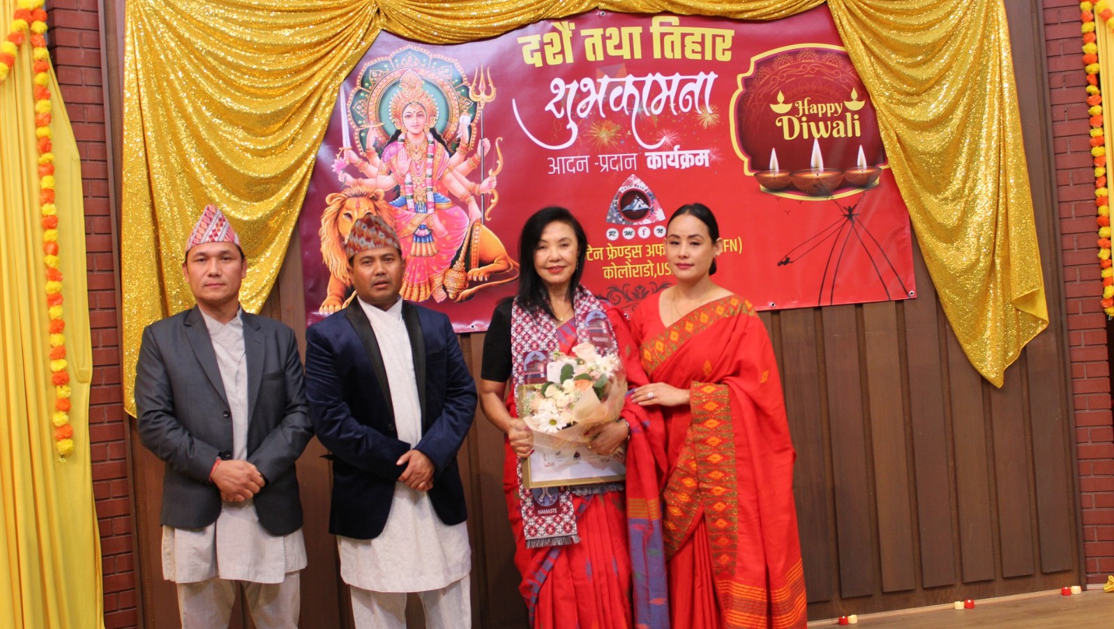 कार्यक्रममा प्रमुख अतिथी तथा संस्थाकी पहिलो महिला अध्यक्ष निलम श्रेष्ठले जेनजी सहिदहरुप्रति श्रद्धाञ्जली व्यक्त गर्दै कोलोराडोमा यसपटक मनाइएको दसैँ तिहार शुभकामना कार्यक्रम इतिहासमा विशेष कार्यक्रमका रुपमा अभिलेख हुने बताइन् ।