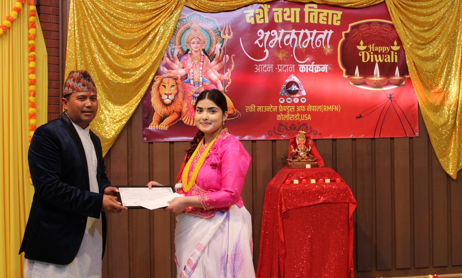 अरोरा : नेपालमा जेनजी आन्दोलनमा आफ्नो बलिदान दिएका जेनजी सहिदहरुको सम्झनामा अमेरिकाको कोलोराडोमा दसैँ तिहार शुभकामना कार्यक्रम सम्पन्न भएको छ । कोलोराडोको अग्रणी संस्था रक्की माउन्टेन फ्रेण्ड्स अफ नेपाल (आरएमएफएन)ले यसपटकको दसैँ तिहार कार्यक्रम जेनजी सहिदहरुको सम्मान तथा सम्झनामा सामान्य रुपमा शुभकामना साटासाट गरेर सम्पन्न गरेको हो ।
